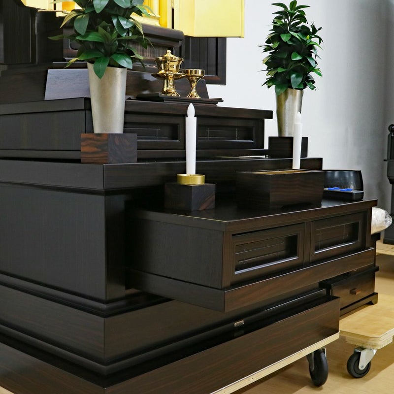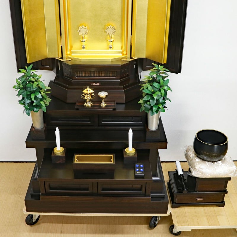 金メッキ仏器茶器・造花おしきみSサイズ×2・LED電子ローソク極小×2・リン棒9号・リン布団6号