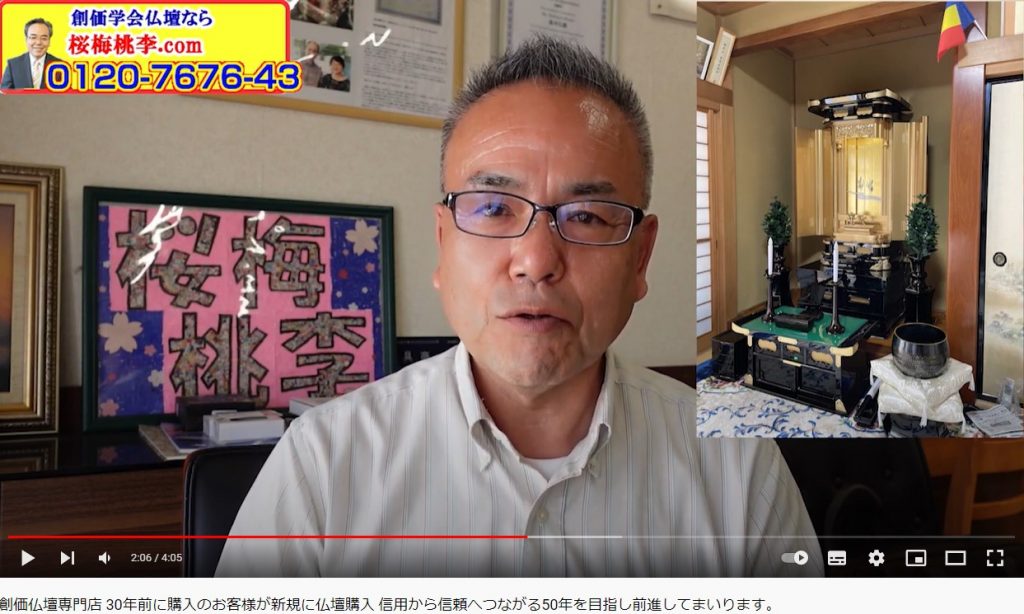 「30年前は以前の古河文化会館横の店舗で左側の家具調仏壇を購入いただきました。その時はアパートでした。この30年は普通じゃなかった!信心していて本当に良かった。だからすべてを乗り越えてここまで来れました。地域広布の新たな牙城になれるよう頑張っていきます」と