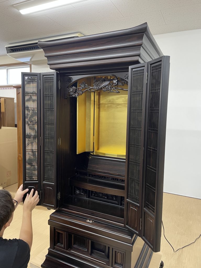 金剛堂さんの「51本黒檀尾長鳥」になります。この度転居のためサイズの問題で手放すことになりました。丁寧にお使い頂いており、状態がとても良い仏壇です。黒檀が使用されておりますので落ち着いた品格ある仏壇です。