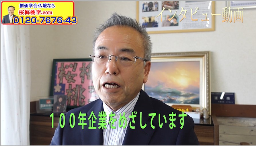 会社としての目標はずばり100年企業ですね。通常、会社を設立して30年が賞味期限今年31期になりました。おかげさまで後継者もいます。次の後継者も希望しておりま、個人の目標になりますけれども、今年65歳になりました。 日本の高齢者の仲間入りになりました。 私は62歳から空手を始めております。今できることを。どのような気持ちで?望むか?何かにチャレンジして行く、生老病死をどう自分自身が希望と目標を持った人生にしていくのかが大切だと思います。何のために池田先生が健康長寿という指針を入れていただけたのか?そして絶対勝利の人生となるとの指針です 私の個人の目標は120歳まで。自分の足で?自分の頭で自分の思いでしっかり生きて行き生き抜いて。池田先生の弟子の一分として広宣流布のためにしっかりとたたかって自分自身が死ぬまで人間革命して行く、そういう決意でおります。 本日は貴重なお話をお伺いすることができ、とても感謝しております。桜梅桃李comのますますのご発展と会社を支えているご家族の皆様のご健康とご活躍を心よりお祈りいたします。大変にありがとうございました。 ありがとうございます