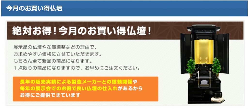 創価仏壇 桜梅桃李.com 新しく「今月のお買い得仏壇コーナー」新設いたしましたのでご紹介させていただきます。