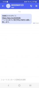 当店LINEから、 ①スマホのショートメッセージにSMBCファイナンスサービス 送ります。