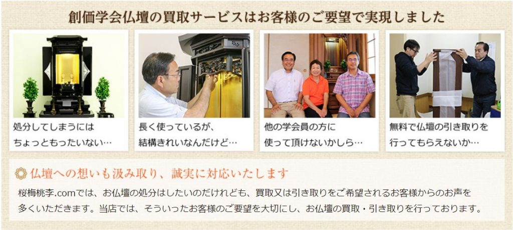 この仏壇買い取りサービスはこのサービスは、そのお仏壇の取り扱いに困り、次の方に繋げて欲しいとの要望から始まったものであります。