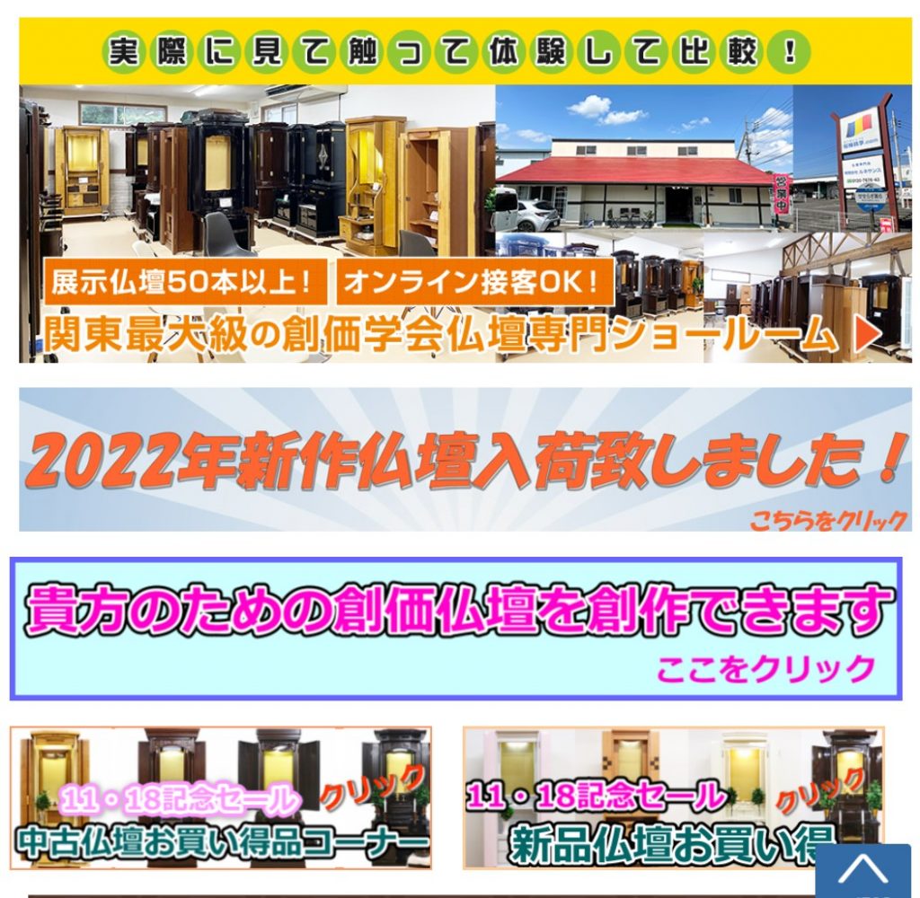全国対応 創価仏壇専門店 11・18記念セール開催 お買い得品 お勧め品続々アップしています。 お知らせ 2022.11.13 只今11・18を記念して大変お買い得なコーナーを新品仏壇と中古仏壇コーナーで開催しています。12月からの各メーカーの値上げ前のタイミングになります。年末・年始に新たな仏壇を購入予定の方に是非ともご利用いただければと思っています。何卒よろしくお願い申し上げます。 « 前のブログへ ブログ一覧 次のブログへ »