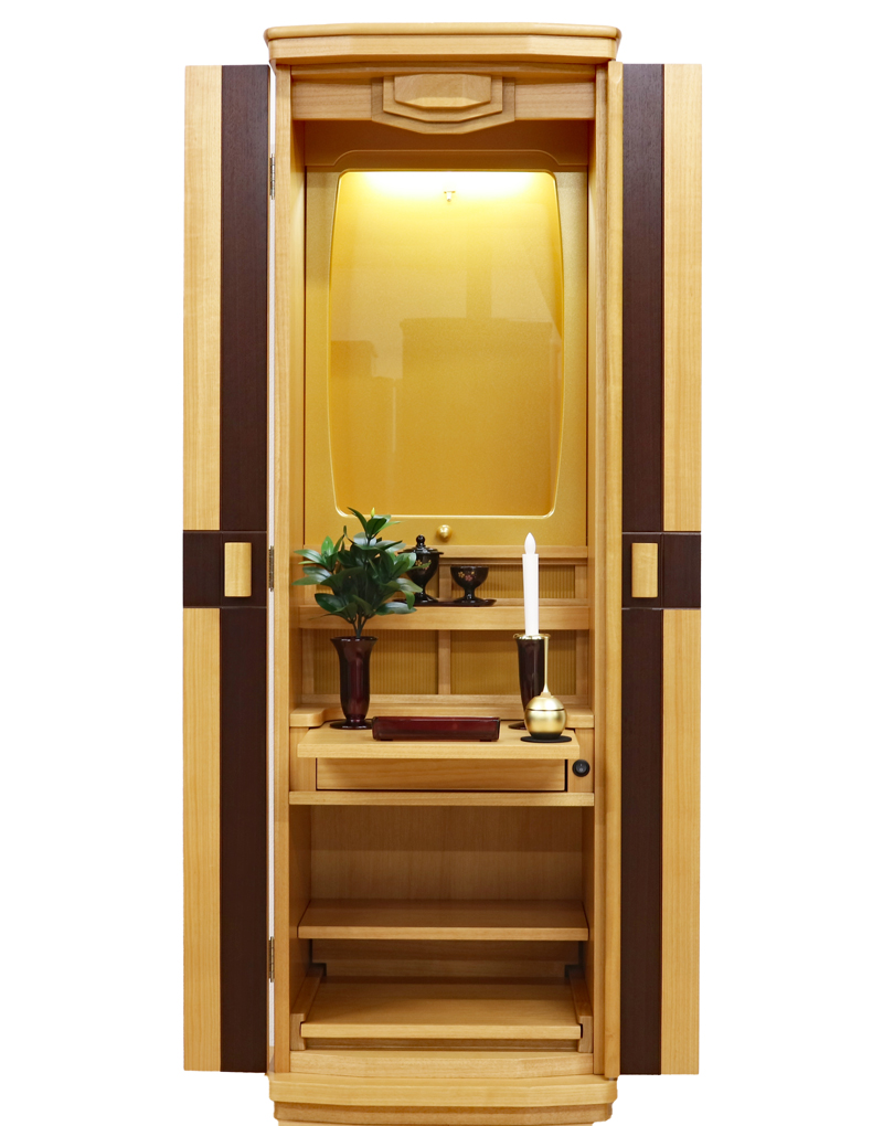 天然木材のビーチ(ブナ)・ウォールナットを使用したアクリル厨子カバー付きの中古仏壇です。天然木材の美しさ・洗練されたデザインが秀逸のお仏壇です。製造からわずか1年の優良中古仏壇です。明るいツートンの色味が愉しい雰囲気のあるいつでもみんなと唱題会しているような仏壇に仕上がっています。もちろんおひとりでの唱題会も心が弾みあっという間に気が付けば1時間なんてことになりそうです。 新たな仏壇の購入は「人生のターニングポイント」になります。素敵な人生を共々に!