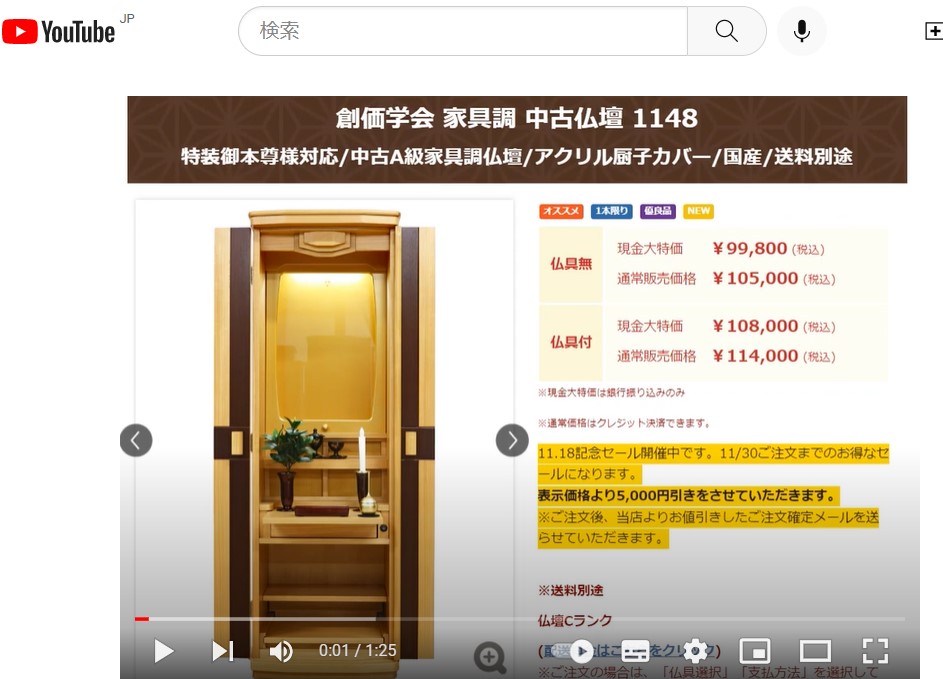創価学会 家具調 中古仏壇 1148:発売!動画で紹介 お知らせ 2022.11.29 創価学会 家具調 中古仏壇 1148:動画で紹介! 天然木材のビーチ(ブナ)・ウォールナットを使用したアクリル厨子カバー付きの中古仏壇です。天然木材の美しさ・洗練されたデザインが秀逸のお仏壇です。製造からわずか1年の優良中古仏壇です。 « 前のブログへ ブログ一覧 次のブログへ »