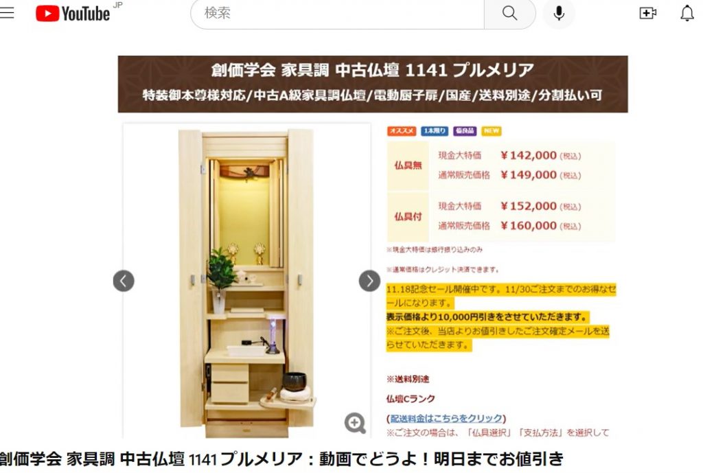創価学会 家具調 中古仏壇 1141 プルメリア:発売動画で紹介 お知らせ 2022.11.29 創価学会 家具調 中古仏壇 1141 プルメリア:動画で紹介 金剛堂さんで現在も仏具付き価格229,250円販売中の「1541プルメリア」の中古仏壇です。製造からわずか1年の優良中古仏壇です。ホワイト系のお部屋になじむさわやかな家具調仏壇です。 « 前のブログへ ブログ一覧 次のブログへ »
