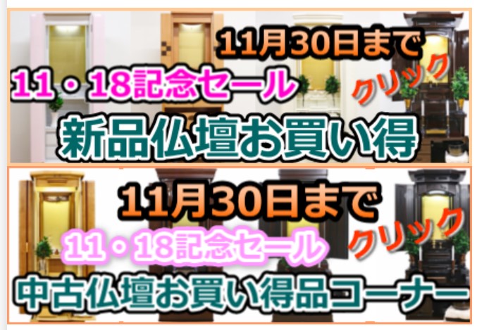 いよいよ、本日11月30日の期限が参りました。 情熱店長ブログ 2022.11.30 いよいよ、本日11月30日の期限が参りました。明日から仏壇メーカーの値上げが始まります。仏壇+仏具についても10から15%と報告され、すでに新価格表も郵送されてきております。従いまして当の在庫につきましては現品限りの表示価格で売約後は新価格に随時変わります。 お仏壇は高額商品でもありますので、本日を起点としてお考えいただき、同じ商品なら現価格が至極お客様のメリットが多いと思います。先行しまして11・18記念セールは本日ご注文分までとなります。よろしくお願い申し上げます « 前のブログへ ブログ一覧 次のブログへ »