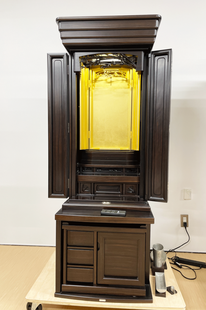 創価学会中古仏壇入荷しました:金剛堂さんの黒檀の仏壇です お知らせ 2023.02.28 創価学会中古仏壇入荷しましたその2:金剛堂さんの黒檀の仏壇です。 金剛堂さんの黒檀はとても有名ですね。厨子内の金箔もとても良いと思います。今回は厨子内の徳利が原因で少々金箔のハガレが有りました。厨子内を上から見ないとわかりません。商品ページに記載します。早々とご希望の方はlineください! « 前のブログへ ブログ一覧 次のブログへ »