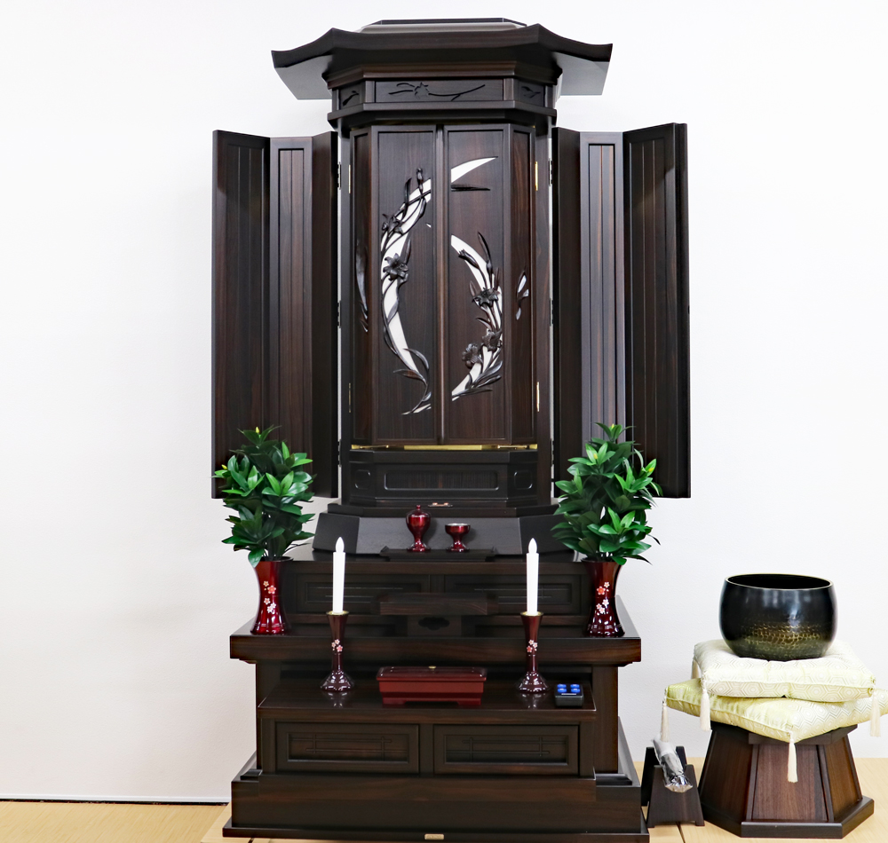 現在でも金剛堂さんにて、仏具付価格1,204,920円で販売中の「25本黒檀白ゆり」の中古仏壇です。