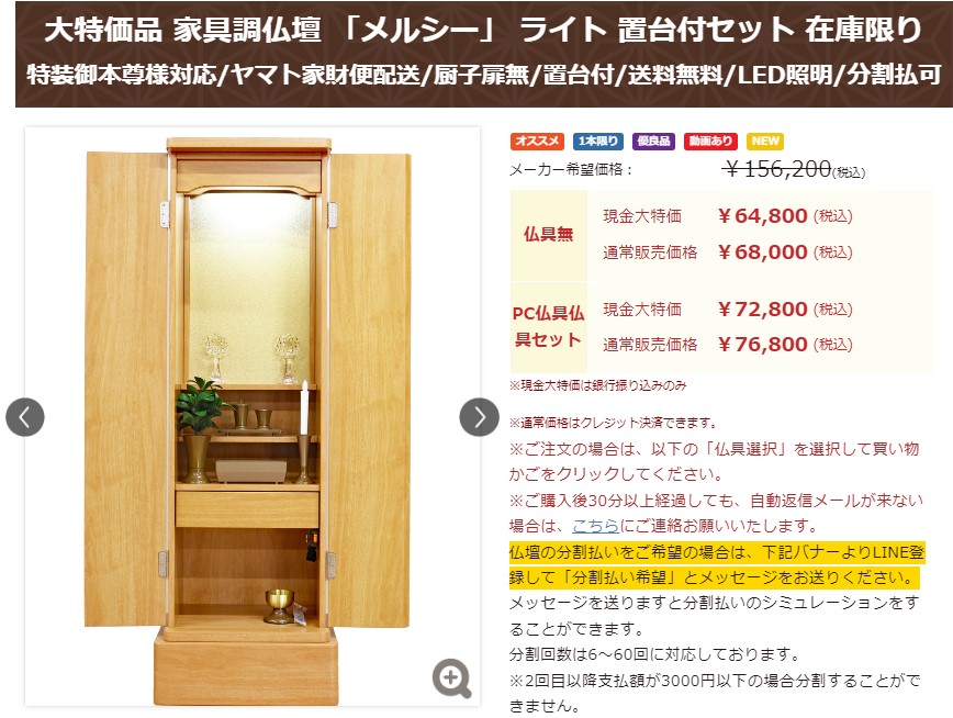 メルシーは特装ご本尊様をゆっくりご安置できるコンパクトは仏壇です