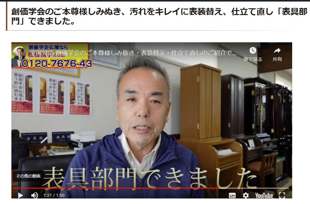 創価学会のご本尊様専門に仕立て直し、傷の修復まで行っています。当代随一の修復士でもある