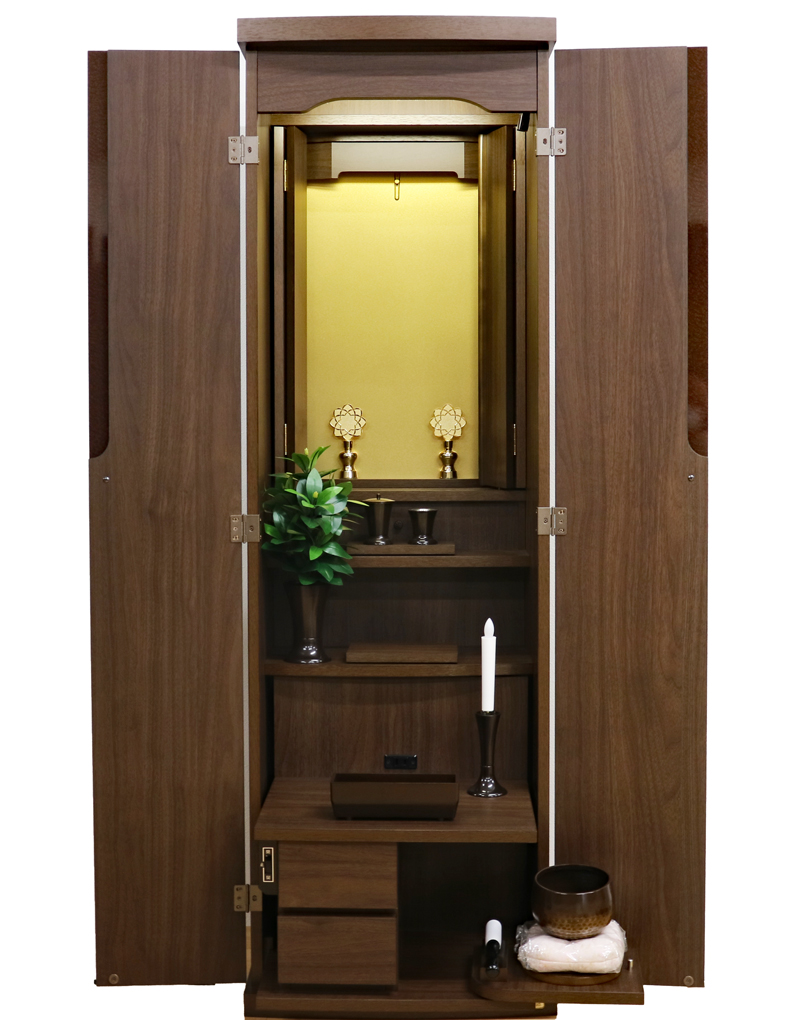 コンパクトでもしっかりとした家具調仏壇が欲しい!そんな方向けお手頃価格でご提供させていただきます。低めのイスをご使用いただければご本尊様との目線もばっちりです。この仏壇からあなた自身の未来をどのように開くのか!