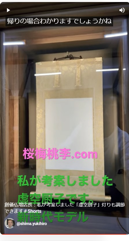 桜梅桃李.com ショールームに置きまして実物の展示会も行っておりますので、ぜひご来店いただき実際にどのような虚空会をデザインでき、さらに光により照明の光量などを実体験して見て頂きかご感想なども頂きたく思っております。 今後「虚空会厨子・スタンダード」から、素材、カラーリングを追加しバリエーションを増やしていきたいと考えております。