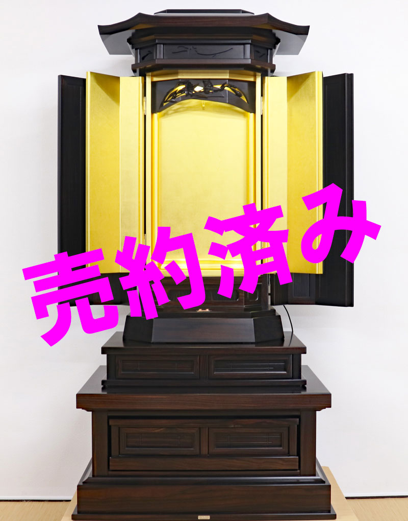 現在でも金剛堂さんにて、仏具付価格1,198,520円で販売中の「25本黒檀白ゆり」の中古仏壇です。黒檀の無垢板をふんだんに使用して、白ゆりの彫りを立体的に仕上げております。厨子扉の背景にはプラチナ箔が施されております。お厨子は本金箔厨子となります。