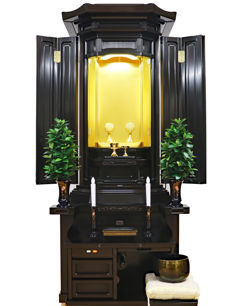 創価学会 厨子型 中古仏壇 1099 優雅 黒檀:発売しました!現在当店にて、新品仏具付価格870,000円で販売中の創価学会厨子型仏壇「優雅」黒檀の中古仏壇です。照明を当店にてLED照明に交換いたしました。お厨子上部だけでなく、両脇にもLED照明がついている彩光厨子を採用しているので、御本尊様を明るく拝すことができます。状態もよく優良中古厨子型仏壇です。