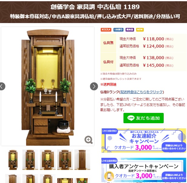 創価学会 家具調 中古仏壇 1189:購入アンケートで3000円クオカードプレゼント