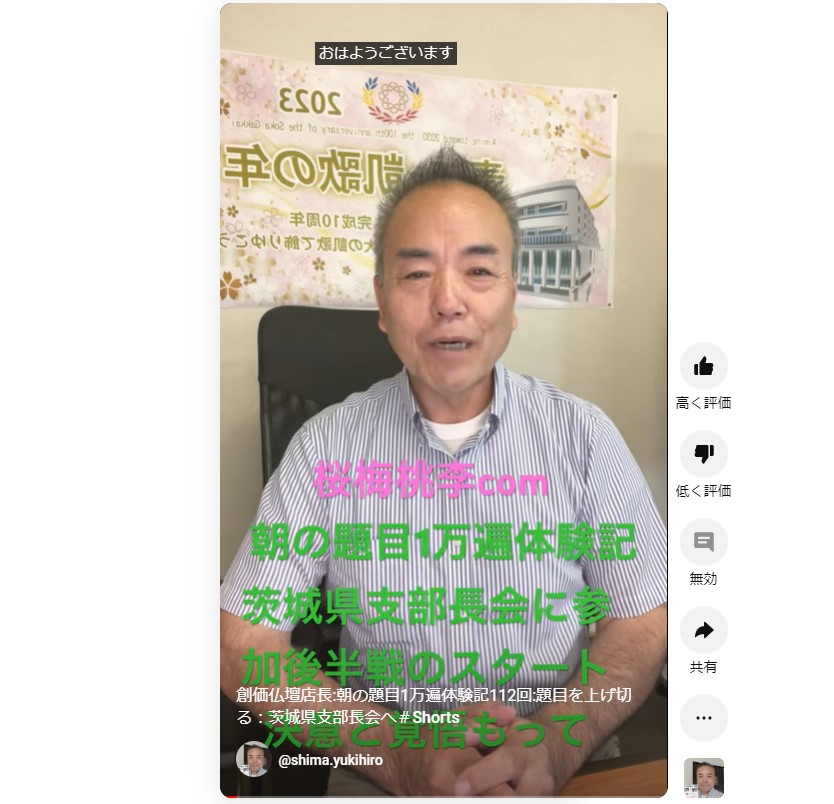 本日も清々しい題目をあげることが出来ました。心から感謝しています。これから茨城県支部長会に参加させていただきます。2023年「青年凱歌の年」後半戦のスタートになります。