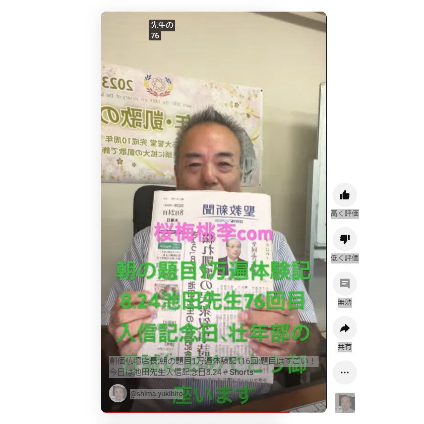 今日は池田先生の76回目の入信記念日です。