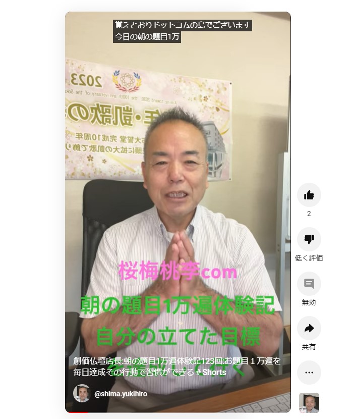 お題目1万遍を毎日達成しました。自分の立てた目標を一つ一つ達成していく、達成できない時もあるかもしれませんが、達成する!と決めていつもチャレンジして行く。