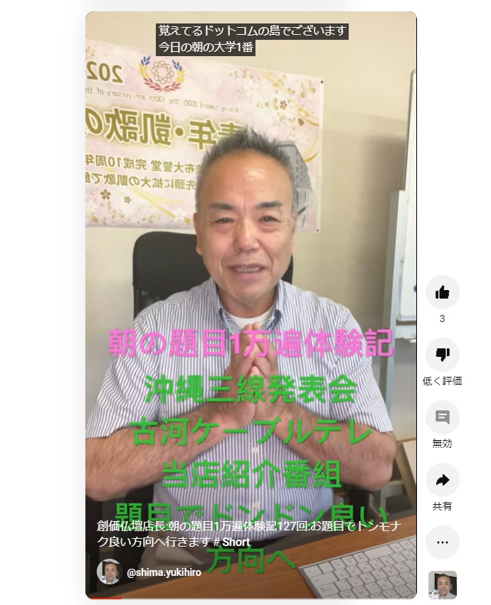 創価仏壇店長:朝の題目1万遍体験記127回:お題目でトンモナク良い方向へ行きます 情熱店長ブログ 2023.09.05 毎日題目の体験があります。お題目でトンモナク良い方向へ行きます!昨日は三線の発表会や古河ケーブルテレビ関係の事でスケジュールがびっしり埋まってしまいました。 さらに様々な出来事もありました。しかしながらすべてをお題目で乗り越えていく、お題目があれば間違いなく自分自身が最高に良い方向へ、良い方向へと新たな絆が出来たり、嬉しい事にこのYouTube動画を見ていただいて、お題目あげると新たに決意された方もいます。感謝しか有りません « 前のブログへ ブログ一覧 次のブログへ »
