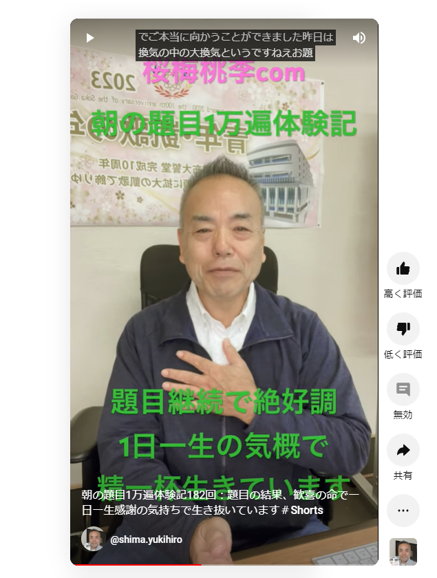 最近は一日一生のつもりで精一杯、できるだけの事をやりつくして、そして眠りにつくそう言う毎日を送っています。今日も精一杯生き抜きます。ありがとうございます。