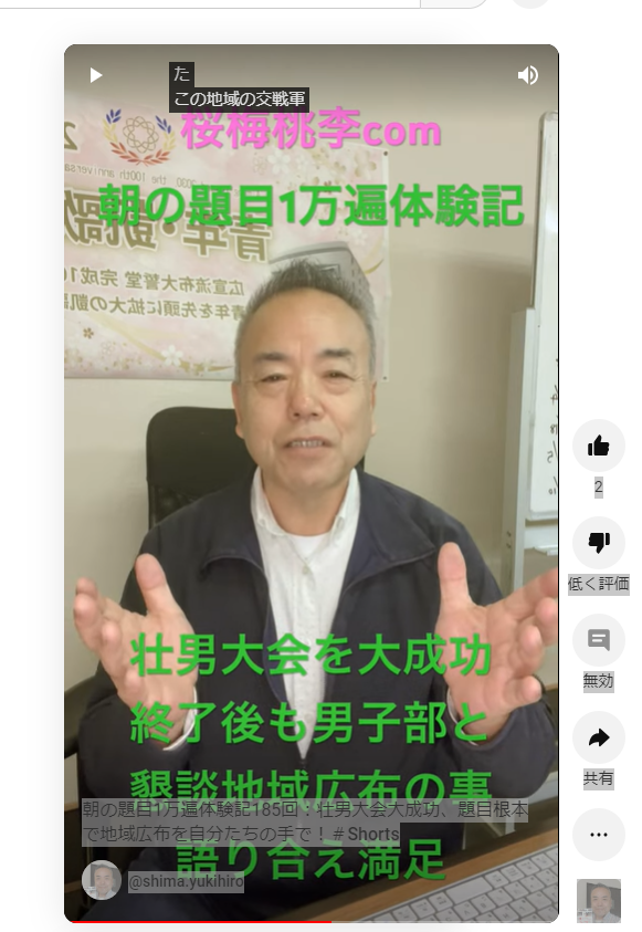 また、会合終了後に男子部と壮年代表一人に残って頂き、今回の会合に参加した感想を含め、地域広布への今後の課題、仏法対話についてもお話が出来とても有意義な時にすることが出来ました。