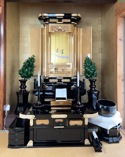 正徳は黒塗りのお写真でもわかると思いますがフル装備の仏壇です。旧店舗では設置スペースもなくまた2台を
