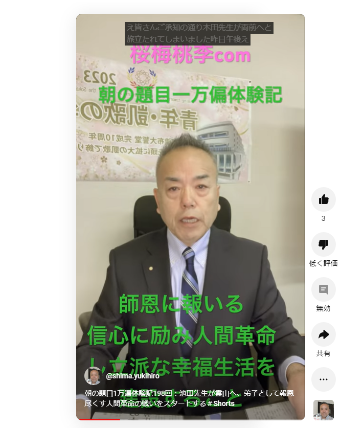 朝の題目1万遍体験記198回:池田先生が霊山へ、弟子として報恩尽くす人間革命の戦いをスタートする 情熱店長ブログ 2023.11.19 池田先生が霊山へ、弟子として報恩尽くす人間革命の戦いをスタートしていきます。昨日の午後14時20分ごろ第1報が入り、思わず絶句しました。 本日の聖教新聞名字の言から「師恩に報いる道とは、ただ一つ、益々信心に励んで、人間革命をし、立派な幸福生活を建設する事」弟子の本門の戦いは始まりました! « 前のブログへ ブログ一覧 次のブログへ »