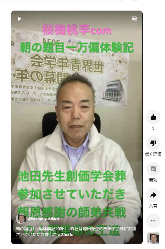 男子部から壮年部へ池田先生を師匠とて自分自身の凡夫の命と戦いながら今日まで参りました。