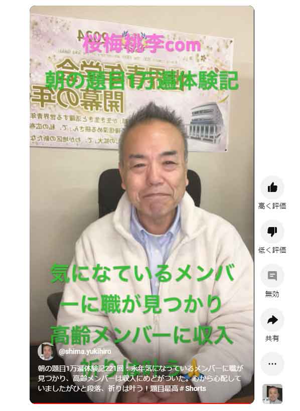 年金だけでは生活できず、でも題目おあげて必ず開けるからと激励しておりました。感無量です!、もう一方は75歳になります10月に雇い主が無くなり仕事が出来なくなりました。