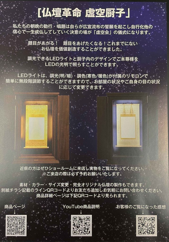 2023年8月、虚空厨子第2弾:常住ご本尊様・特装ご本尊様ご安置可能:リモコン光量+暖色・白色調整