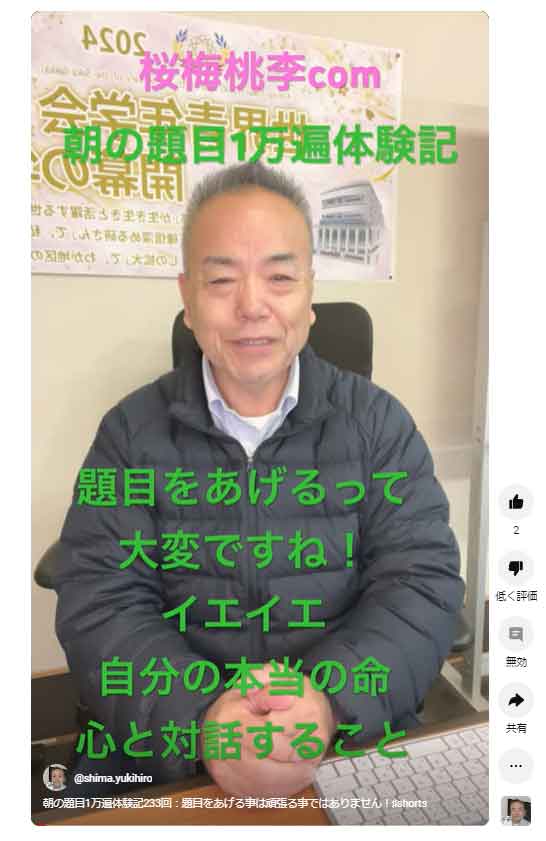 「島さんお題目毎日あげて大変でしょ!」そのような声が聞こえてきます。