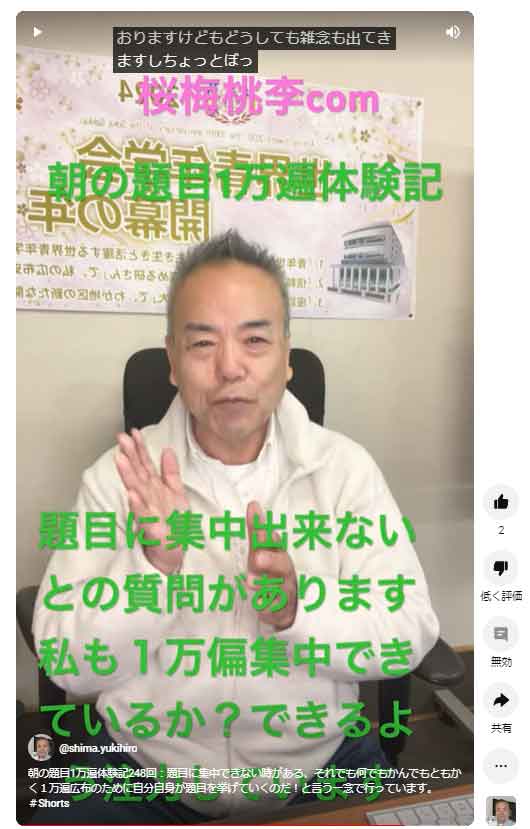 朝の題目1万遍体験記248回:題目に集中できない時がある、それでも何でもかんでもともかく1万遍広布のために自分自身が題目を挙げていくのだ!と言う一念で行っています。 情熱店長ブログ 2024.01.09 ご来店頂いたお客様と仏壇の話の後に信心のお話、そして題目の話になりました。そして「題目に集中できない時がある」とのお話がありました。 私自身も1万遍の中で1篇1篇集中できているのかと言うとそんなことは有りません。雑念は今での起こりますし、ボーっとしている時もあります。それでも何でもかんでもともかく1万遍広布のために自分自身が題目を挙げていくのだ!と言う一念で行っています。 « 前のブログへ ブログ一覧 次のブログへ »
