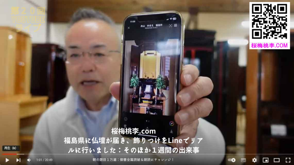 本日1月20日午前中福島県に当店ご注文頂きましたお仏壇が納品されました。無事の到着の連絡と共に、仏具の設置つまり飾りつけはこれで良いのでしょうか?とLine電話を頂きました。また画像をline頂きましたので、line電話で話しながら仏具の場所を移動していただき、また画像をLineして頂き完成しました。
