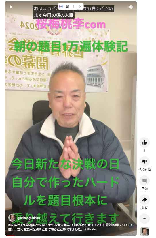 朝の題目1万遍体験記260回:新たな自分自身の決戦が有ります!これに絶対勝利していく!強い一念でお題目を朗々とあげ切ることが出来ました。 情熱店長ブログ 2024.01.22 今日は気合を入れて早朝から題目を唱えきりました。そして今日また新たな自分自身の決戦が有ります!これに絶対勝利していく!強い一念でお題目を朗々とあげ切ることが出来ました。 今日ですね、自分自身の新たな2024年、世界青年学会、開幕の年自分自身で作ったハードルを自分自身が乗り越えていく!強い意志で今日一日、まずは午前中大勝利し、さらなる飛躍をしていくよう頑張っていきます! « 前のブログへ ブログ一覧 次のブログへ »