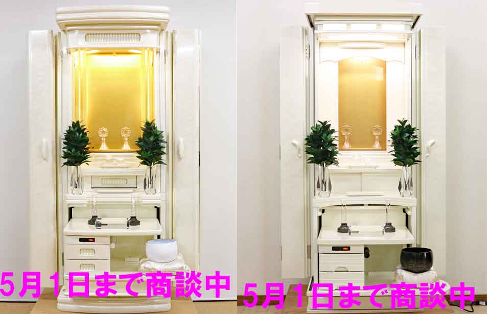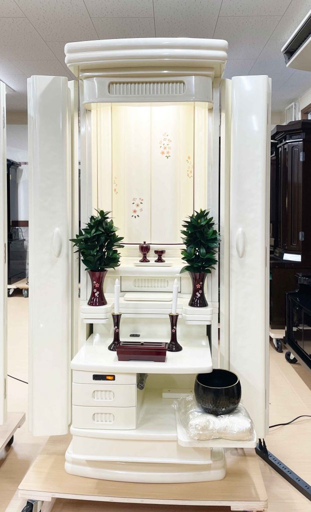 フリーダイヤルから、古河文化会館前の仏壇店が閉まっているのだけど移転されたのは古河市久能1711‐2になりますか?これから伺いたいのでよろしくお願いしますとの事。雨が降ってきたところで気温も下がってきました。ちょうどヤマト家財便さんの出荷2本も終わったところでしたのでとても良いタイミングでした。1時間ぐらい滞在し最終的にこちらの仏壇2本と言うことで、当店の強みであるお仏壇2本並べて比較検討できるショールームである事を実現しました。さらに仏具をアレンジして以下のようなコーデを行いました。