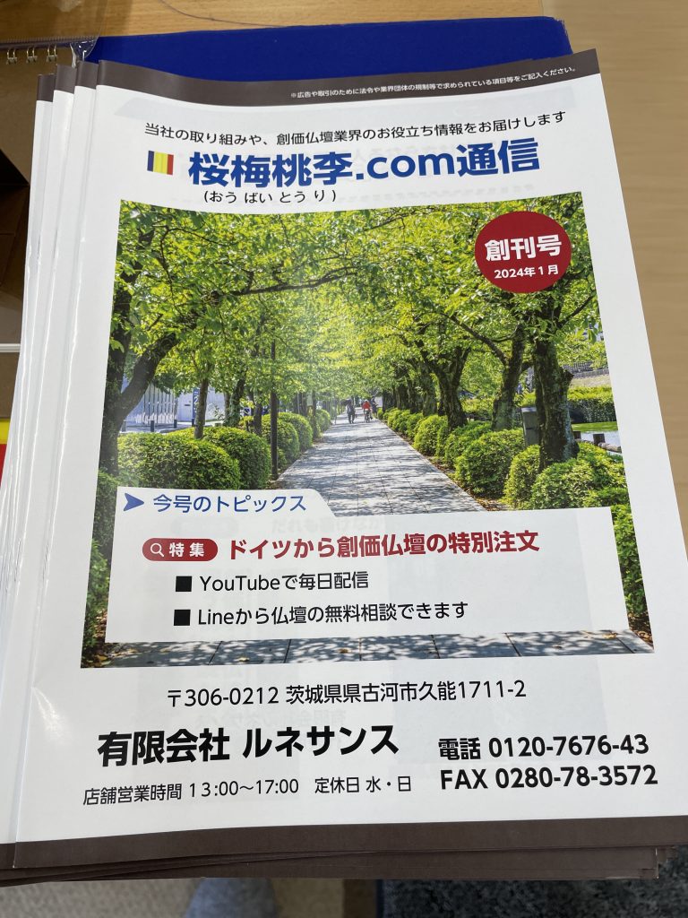 ワールド・セイキョウ:昨日も4冊・今日も4冊買いに来た!茨城県古河市の創価仏壇専門店:栃木県のお客様来店 お客様からの声 お知らせ 2024.02.09 熱心な壮年部の方、いつもローソクにお線香購入頂いています。昨日はいつものようにローソクを買いに来られ、ワールド・セイキョウが有る事がわかり4冊購入今日はワールドセイキョウを購入するためにご来店されました。 昨日も「桜梅桃李.com通信」を持って帰って頂きましたが、今日はコレ宣伝してあげると3冊お持ち帰りされました。嬉しいですね! 店舗入り口の左側はこんな感じで書籍など配置しています。桜梅桃李.com通信:店舗用はA4・8ページの内容になっています。無料配布しています。 « 前のブログへ ブログ一覧 次のブログへ »