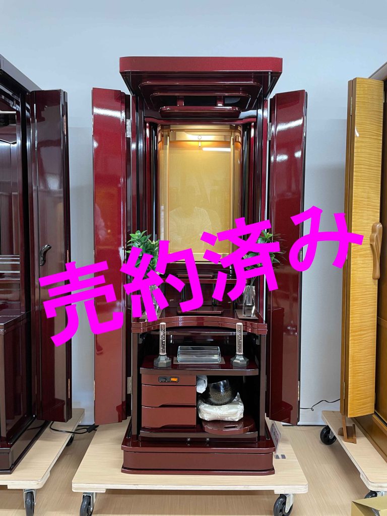 本日千葉県より実物拝見したいと事前予約いただき午前中にご来店いただけました。現在使用のお仏壇が30年ほど新たな決意と共にお仏壇を購入して自分の人間革命のドラマを総仕上げするんだとの強い決意を感じさせていただきました。一番こだわったのが、ご本尊様の位置でした。椅子をご使用されておりますので、ご自身の目線とご本尊様の南無妙の妙の字の位置でした。当店では台車にお仏壇が設置されていますので、お客様の目の前にお仏壇を移動、さらに椅子に着座いただき現実的な目線を趣味レーション頂きました。結果お仏壇の置台も同時に制作ご注文頂きました。この台は特別注文ですのでサイスは自由に選択できます。今回は連休でもありましたので3週間制作期間を見て頂きまして、お仏壇と同時に納品させていただきます。