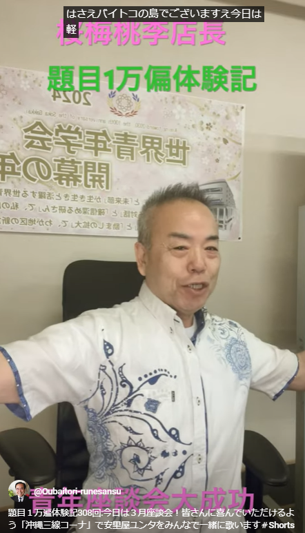 題目1万遍体験記308回:今日は3月座談会!皆さんに喜んでいただけるよう「沖縄三線コーナ」で安里屋ユンタをみんなで一緒に歌います 情熱店長ブログ 2024.03.10 かりゆしで初登場しました!今日は3月座談会です。 長年担当させて頂いております地区座談会に今回「沖縄三線コーナー」のオファーを頂きました時間の制約もありますので「安里屋ユンタ」を皆さんでちょっと練習して一緒に歌う(マスク着用)青年座談会も男子部が参加してくれることになり彼もミニ体験を披露することになりました! 参加者全員と盛り上がっていきたいと思います。 大成功の内容は別途ご報告させていただきます! « 前のブログへ ブログ一覧 次のブログへ »