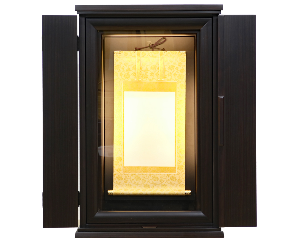 虚空厨子は、創価学会用の仏壇として私が考案しました。そのデザインは、ご本尊様を荘厳に演出し、虚空会の儀式を感じさせるものとなっております。お題目をあげることが自然と心がけられるよう、使いやすさも考慮されています。