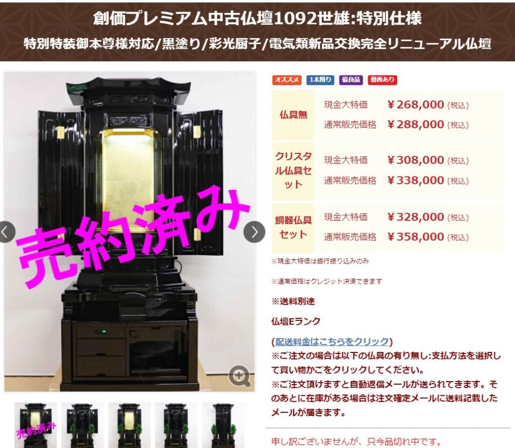創価仏壇専門店 海近くで金属の錆びが心配かも?サポート付き 情熱店長ブログ 2022.05.12 お客様の様々なご事情に対応しております。今回は「世雄」のお買い上げに居つきまして5.6年後の予定されていますお引越し時に、お仏壇の搬送と共にお仏壇のメンテナンスもお約束(サポート引っ越し代は別途)し安心されご購入頂きました。 YouTubeででブログ « 前のブログへ ブログ一覧 次のブログへ »