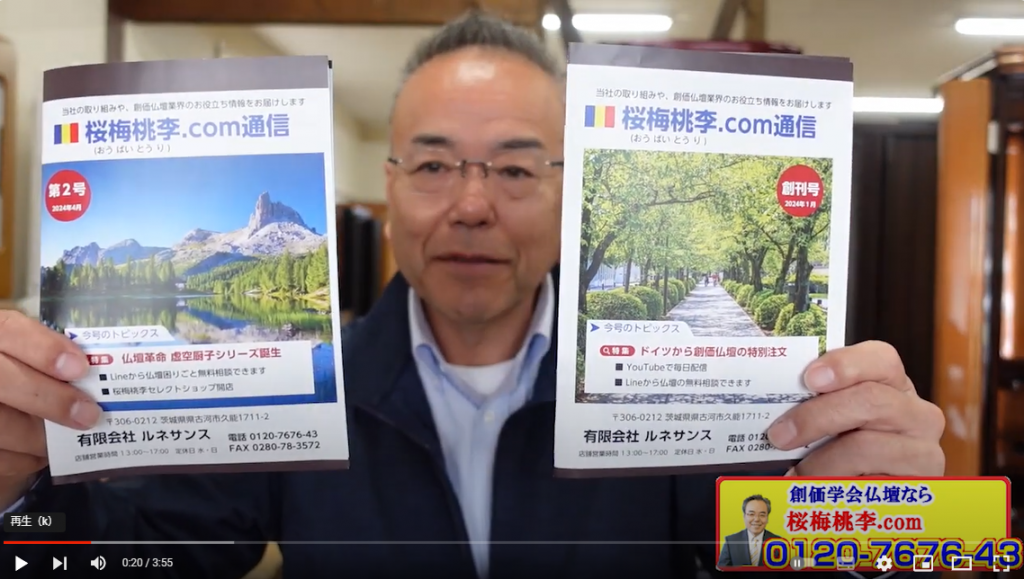 全国対応 創価仏壇専門店の情報誌:桜梅桃李.com通信第2号発刊しました。ご希望の方は是非LINEください無料でお届けしています:希望者全員プレゼント! お知らせ 2024.04.27 希望者全員に無料でお届けします。「桜梅桃李.com通信第2号欲しい!」と記載、住所、名前、電話番号と一緒にlineください。後日お届けします。 « 前のブログへ ブログ一覧 次のブログへ »