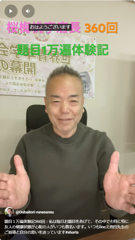 題目1万遍体験記360回:私は毎日お題目をあげて、その中でも特に特に友人の健康状態が心配の人がいつも数名います。いつもlineえ池田先生のご指導と自分の思いを送っています 情熱店長ブログ 2024.05.01 今日もお元気でしょうか!私は毎日お題目をあげて、その中でも特に特に友人の健康状態が心配の人がいつも数名います。そのメンバーとはlineと電話で繋がっています。 今遠くでは北海道に入っているメンバー、そして茨城のエリア、東京エリアにも入院中の方もいます。いつもlineえ池田先生のご指導と自分の思いを送っています。 そして全快を祈っているよと添えて、自分お気持ちを伝えています。お題目を唱えて伝えていく! « 前のブログへ ブログ一覧 次のブログへ »
