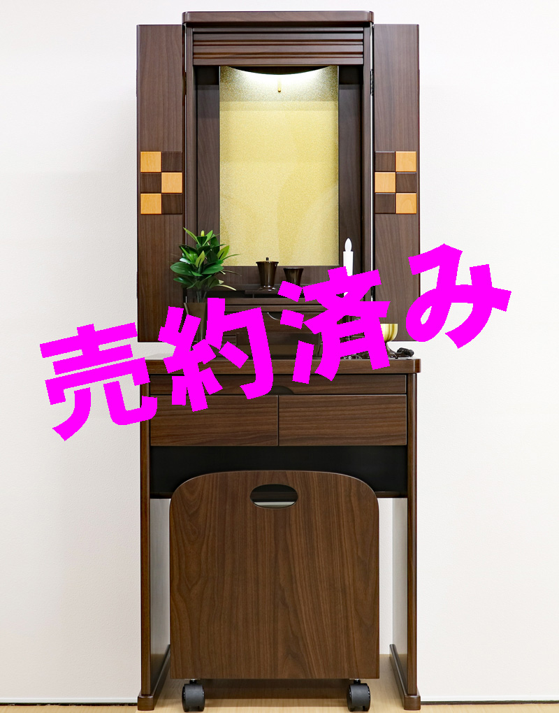 こちらの商品は、イスをご利用の方に最適な設計をしたお仏壇となっております。カバー付きお厨子なので埃も入りくく、ご本尊様をお守りできます。小さなお子さんがいる家庭やペットを飼っているご家庭に人気の商品です。ダーク色はご覧のように落ち着いた色合いの仏壇です。