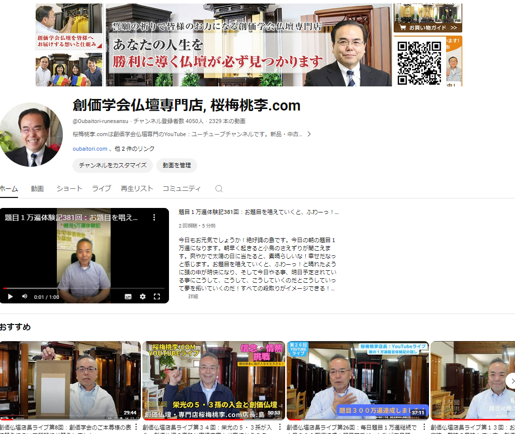 桜梅桃李.comのYouTubeチャンネルから 創価仏壇情報を毎日発信しています!