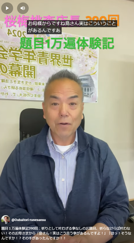 祈りとして叶わざるなしのお題目、祈らなけらば叶わない!実践しなければ叶わない!という事で一つのお話が区切りがついたところで、そのお母さまから「島さん!実はこう言う事があるんですよ!」「ほっ!そうなんですか!?その手があったんですか!!、祈ってもいませんでした!」という事に気が付きました。自分で自分の事気が付いているようで・・て事ですね。