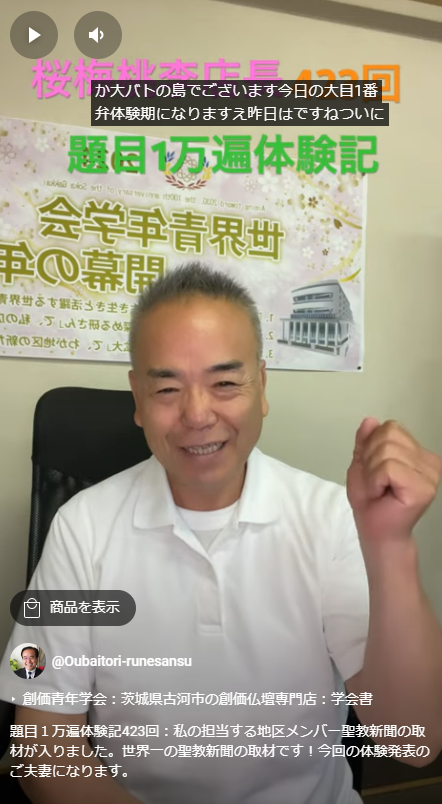 題目1万遍体験記423回:私の担当する地区メンバー聖教新聞の取材が入りました。世界一の聖教新聞の取材です!今回の体験発表のご夫妻になります。 情熱店長ブログ 2024.07.05 昨日はついに私の担当する地区メンバー聖教新聞の取材が入りました。世界一の聖教新聞の取材です!今回の体験発表のご夫妻になります。この方々は本当に不死鳥の如く何度も、何度も何度も何度も信心で乗り越えてまいりました。その体験です。 貴重な体験です。聖教新聞の3面に良くある 「ここまで!」と言う内容の体験です。今回急に決まりました!ただその布石は1年以上前からになっております。 « 前のブログへ ブログ一覧 次のブログへ »