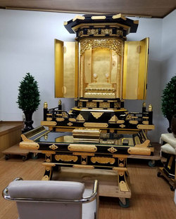 今回ご案内するこちらの中古950は、購入からまだ14年、欄間の紋章も過去私が拝見した限りでは通常は輪宝紋が多いように思う。今回は創価学会の八葉蓮華の紋章が彫り込まれ金箔で装飾されています。当店から2名で3時間前に先入りし、仏壇の欄干初め、仏壇本体以外の物をすべて慎重に梱包しヤマト家財便4名を待ちました。しっかりと梱包し、搬出するだけでも5時間経過しました。酷暑の折でしたが、天候にも恵まれ無事故でトラックに、当店に無事到着しました。