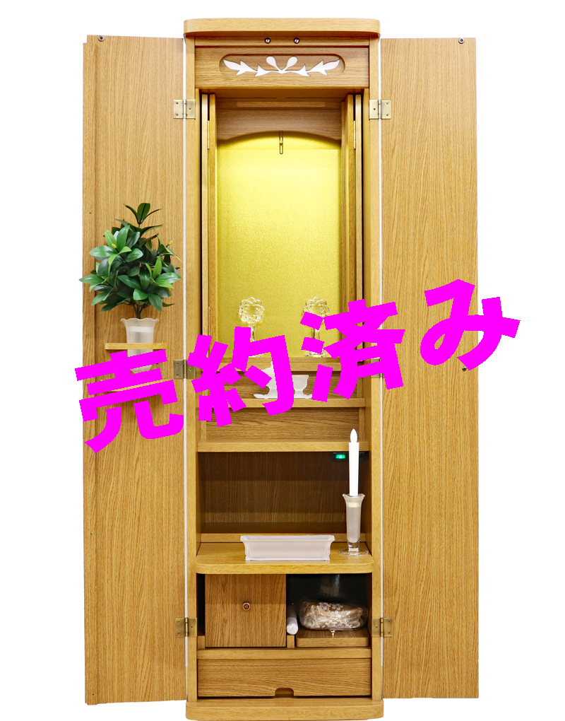 ご家族3人で来店いただき、店内のお仏壇各種をご覧いただき、この仏壇を購入されたいとの事になりました。また「電池ローソク、ローソク立て、香炉はいらない」との事でご注文を頂きました。